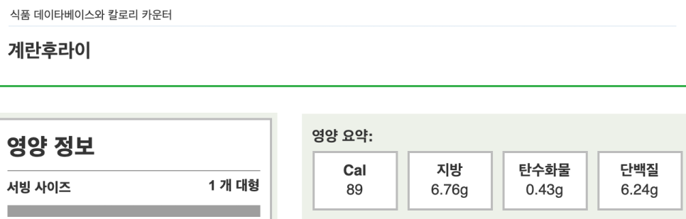 위에서부터 계란후라이, 고추 참치, 흑미밥 순으로 영양 성분표인데요.