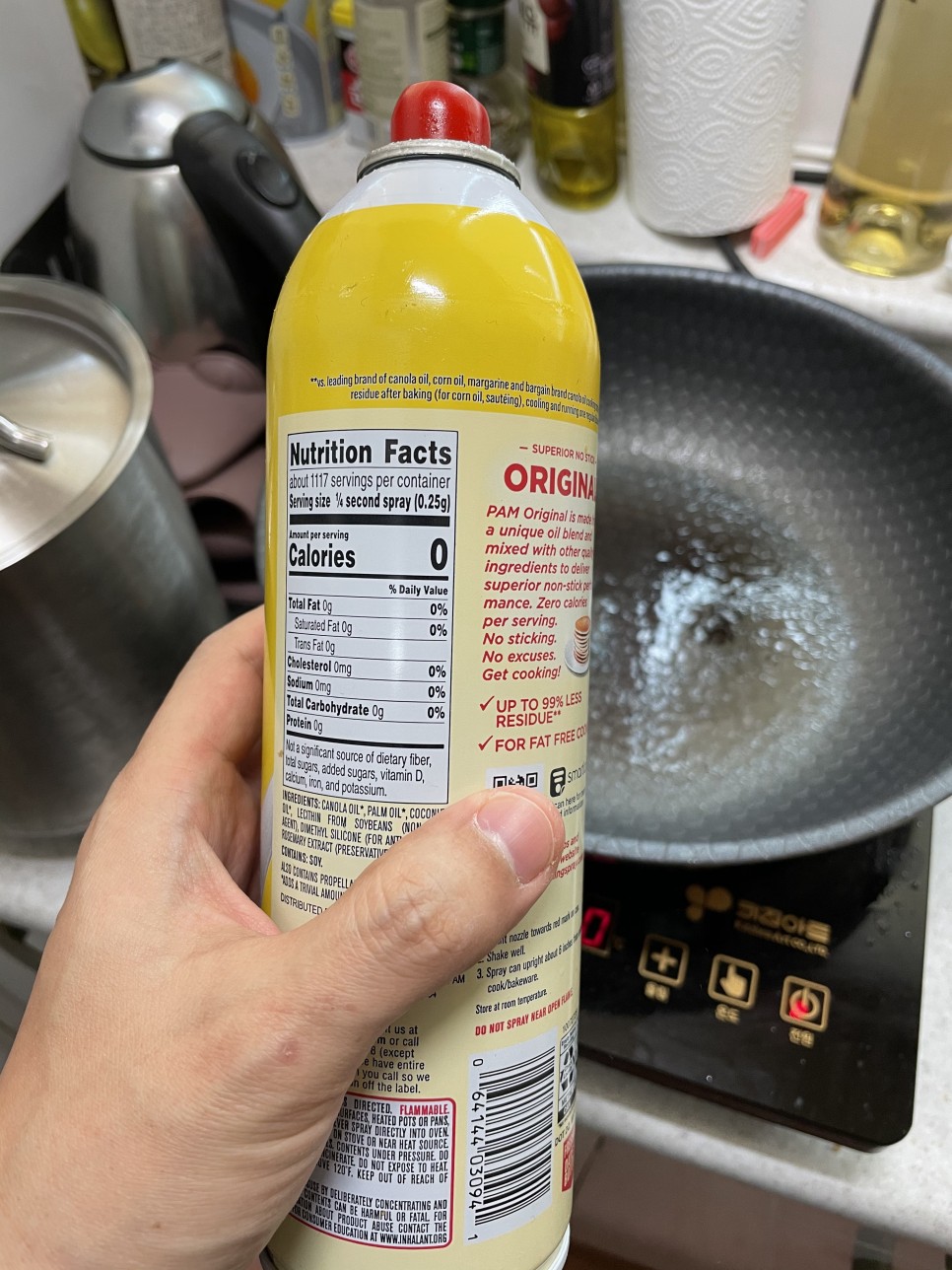그리고 계란 후라이는 당연히 0 칼로리 오일인 팸오일을 사용하시면 됩니다.